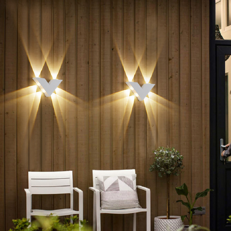 6W V-shape LED wall lamp with durable aluminum body and IP65 waterproof protection, suitable for bedrooms, living rooms, gardens, and outdoor spaces with stylish decorative lighting.