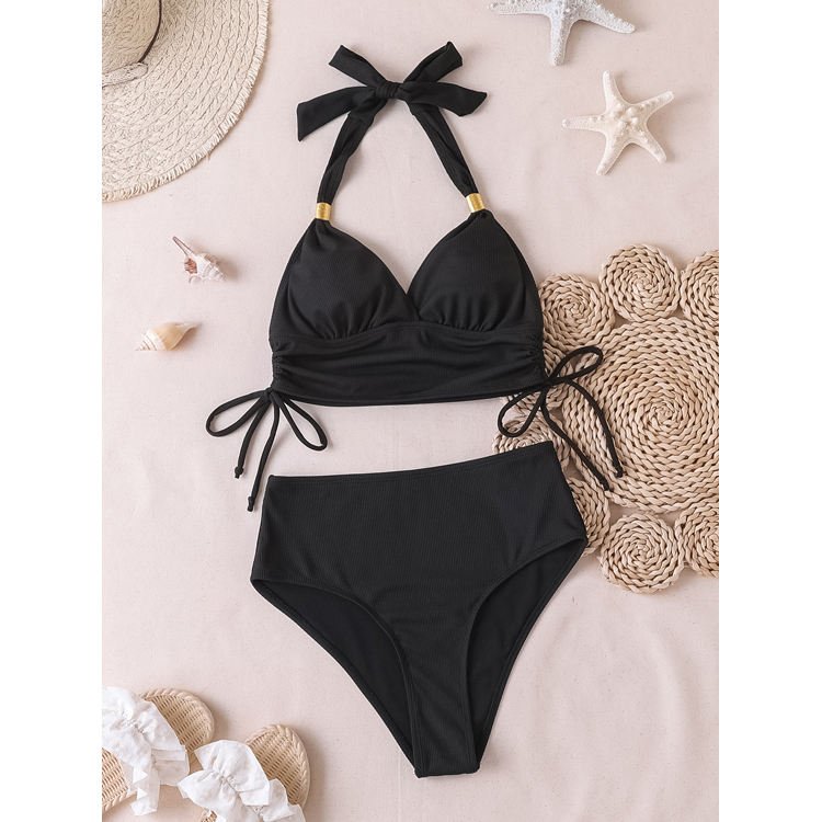 Black Halter Bikini Set – High Stretch Imported Swimwear Bulk Deals