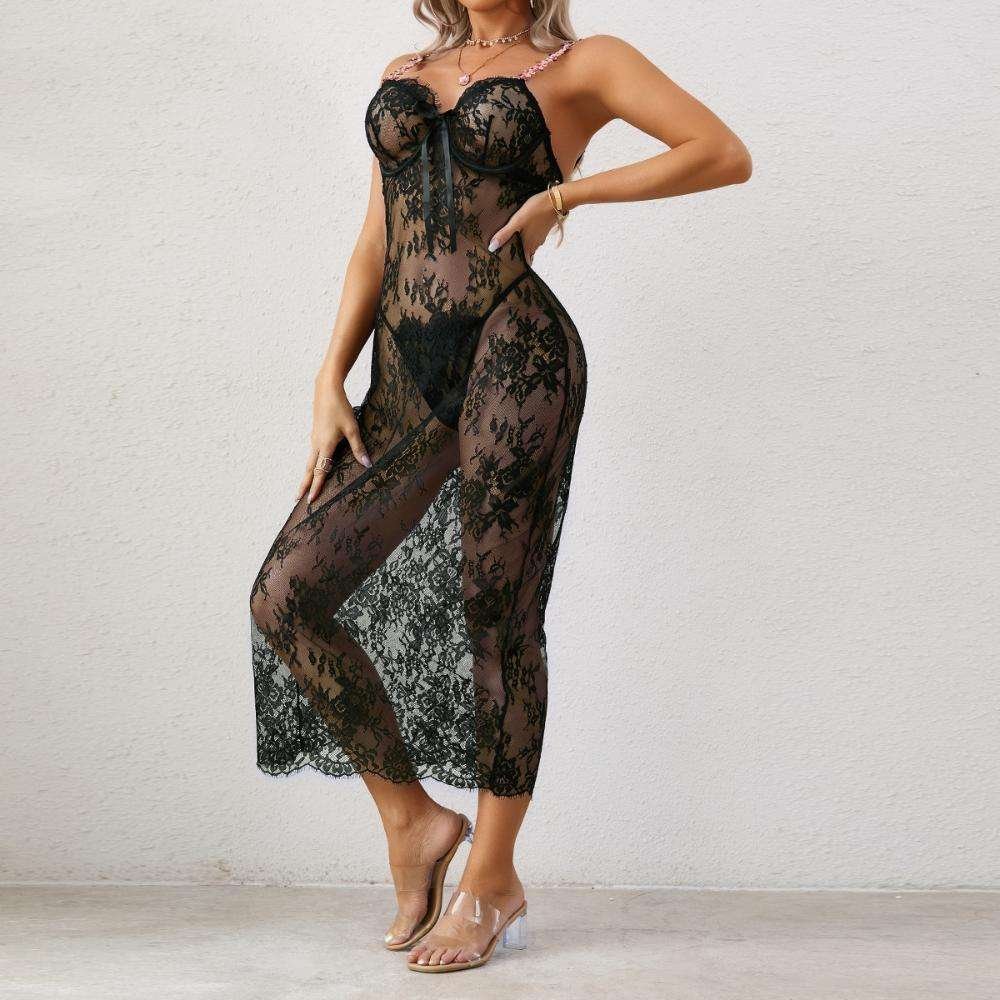 Black Sheer Lace Lingerie Dress for Women – Sexy Transparent Nightwear