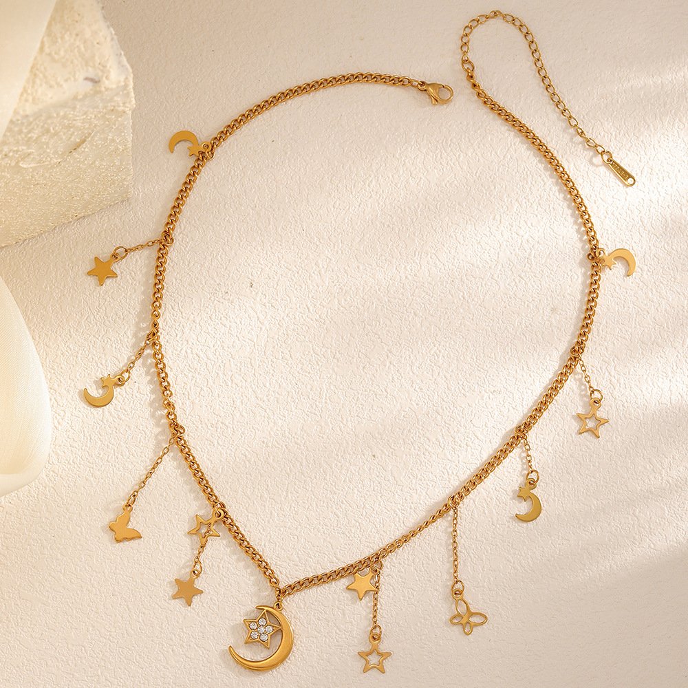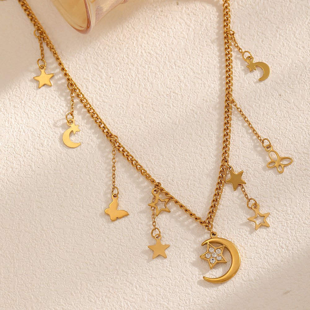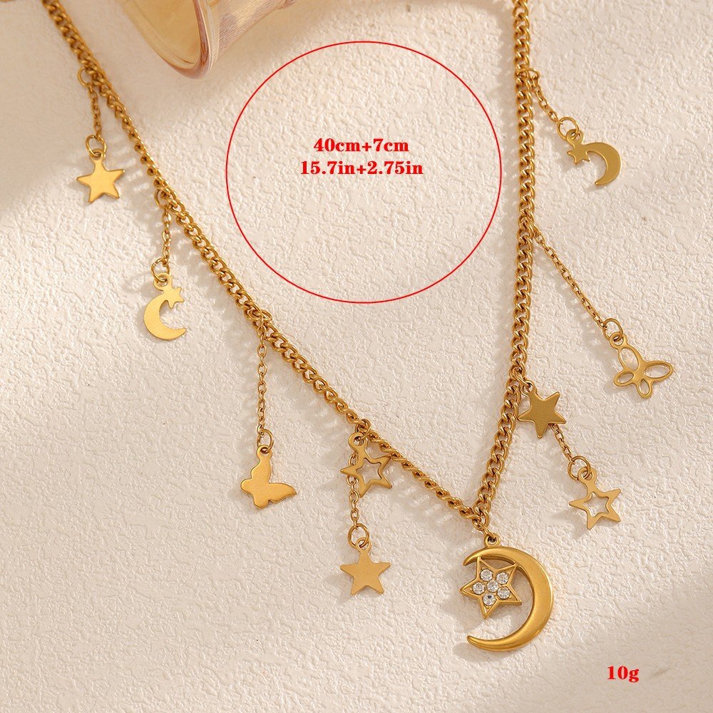 Butterfly Necklace Titanium Steel Moon and Star