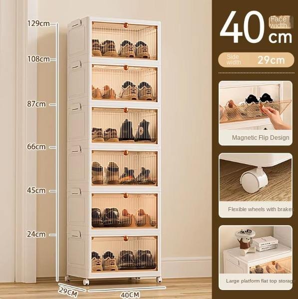 Modern 6-layer plastic folding storage rack with multifunctional design. Space-saving and durable, ideal for organizing clothes, toys, or household items neatly in bedroom, living room, or apartment.