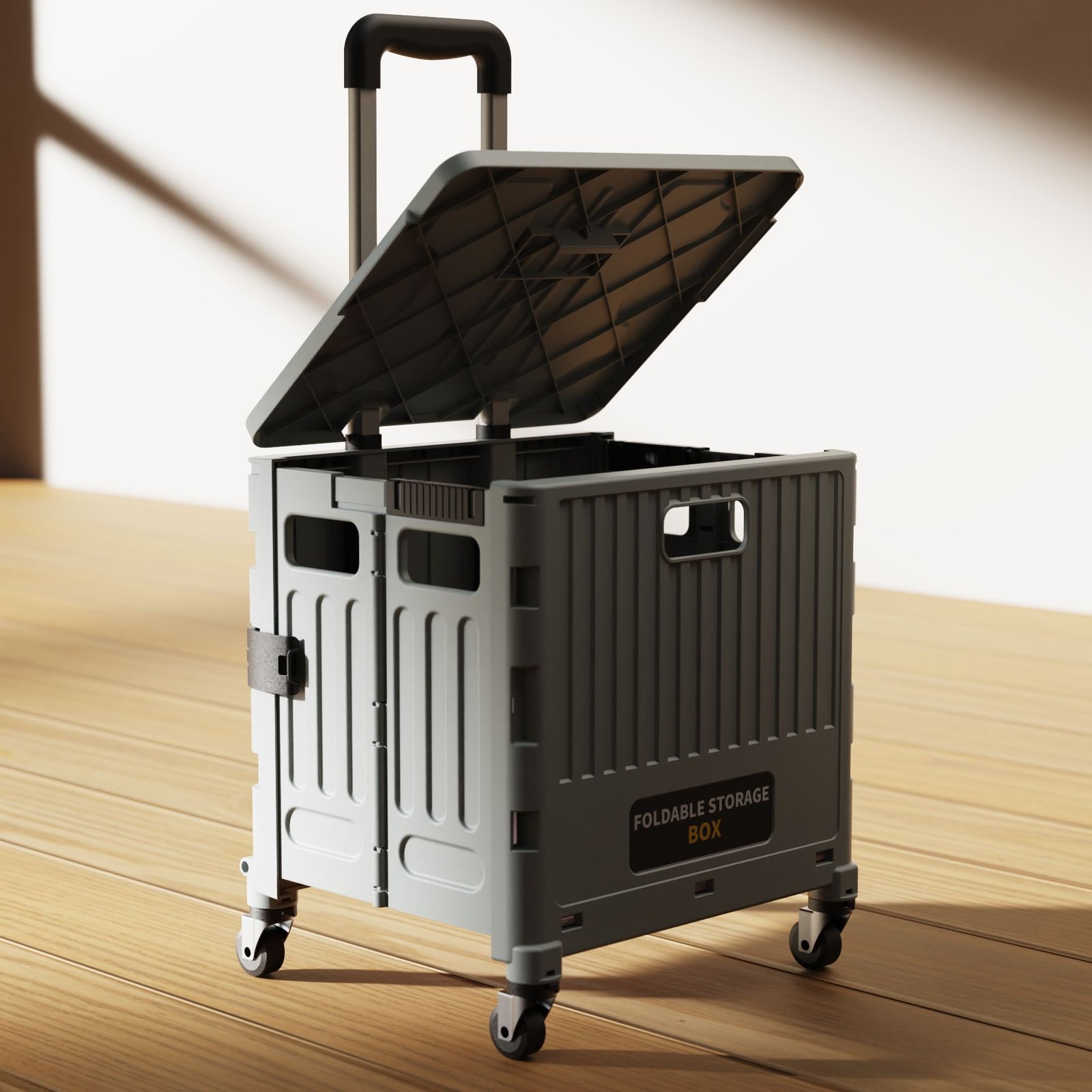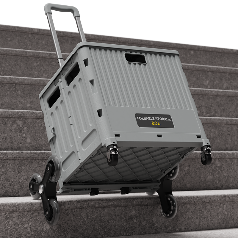 Folding rectangle mini shopping cart with large capacity, durable plastic build, and climbing wheels. Foldable, space-saving design ideal for supermarkets, home storage, and easy transportation.