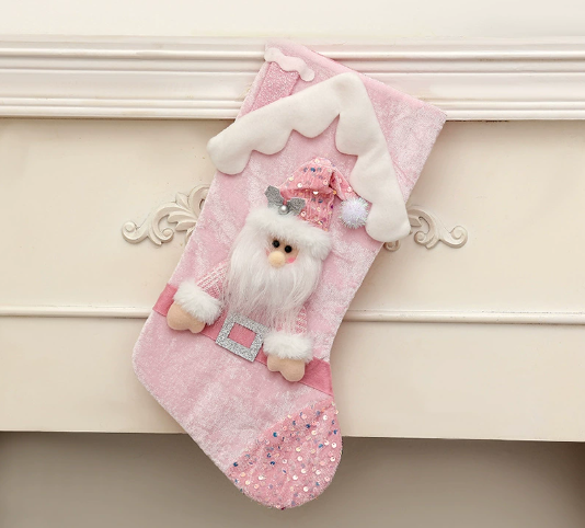 New Christmas Decoration Pink Glitter Exquisite Christmas Socks Children’s Gift Candy Bag
