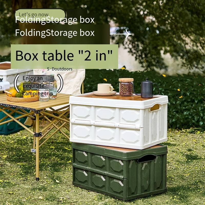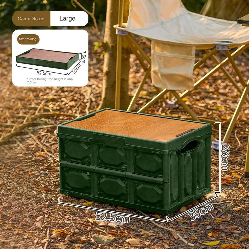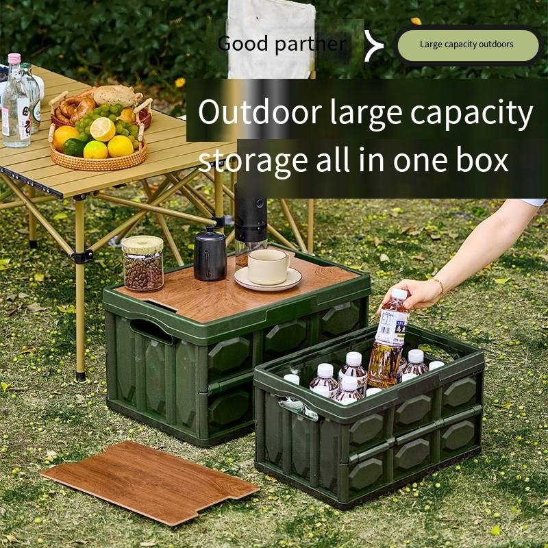 Plastic Storage Box with Wooden Lid | Foldable Organizer & Table