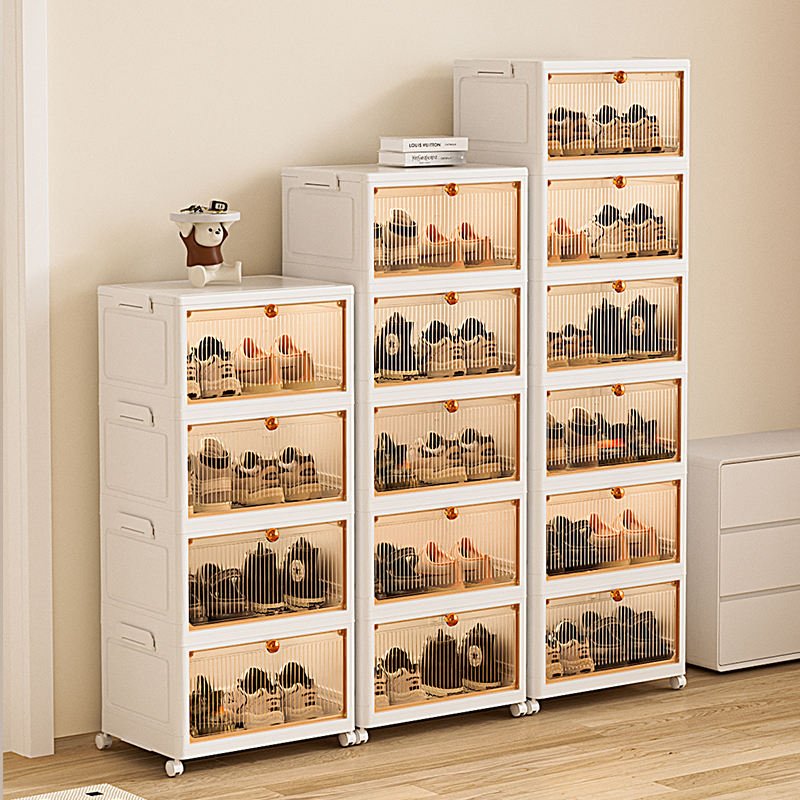 Modern 9-layer standing shoe rack made from durable plastic with size 27×27×127 cm. Space-saving design holds up to 11 pairs of shoes, ideal for organized and clutter-free storage.