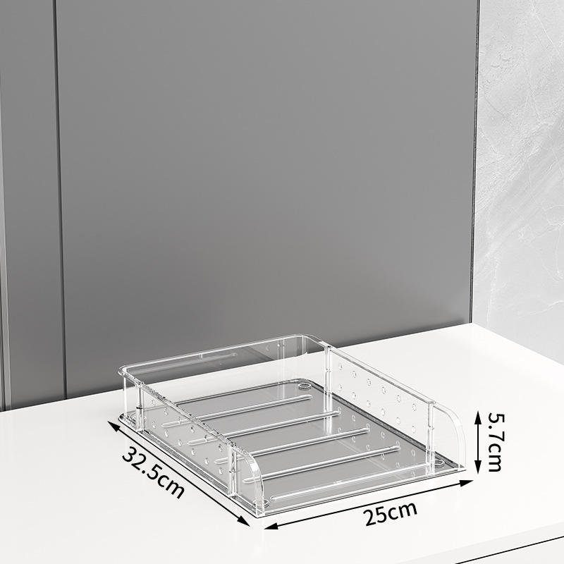 Keep documents organized with this transparent desktop storage rack. Durable, sustainable plastic design ideal for A4 papers, books, and office essentials, ensuring neat and clutter-free workspace.