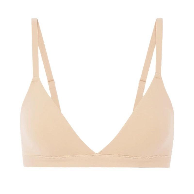 Soft triangle cup wireless bra made from stretchable spandex nylon fabric. Comfortable padded design with U-back support, perfect for everyday wear, light push-up shaping, and breathable all-day comfort.